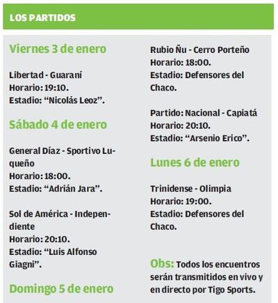 También está el hecho de que otros cuatro clubes, Cerro Porteño, Sol de América, Nacional y Sportivo Luqueño sabrán su suerte en la Copa Sudamericana, en la que intervendrán como representantes paraguayos y cuyo sorteo está previsto para hoy en la sede de la Conmebol. El arranque de la competencia está programado para el 28 de febrero próximo.