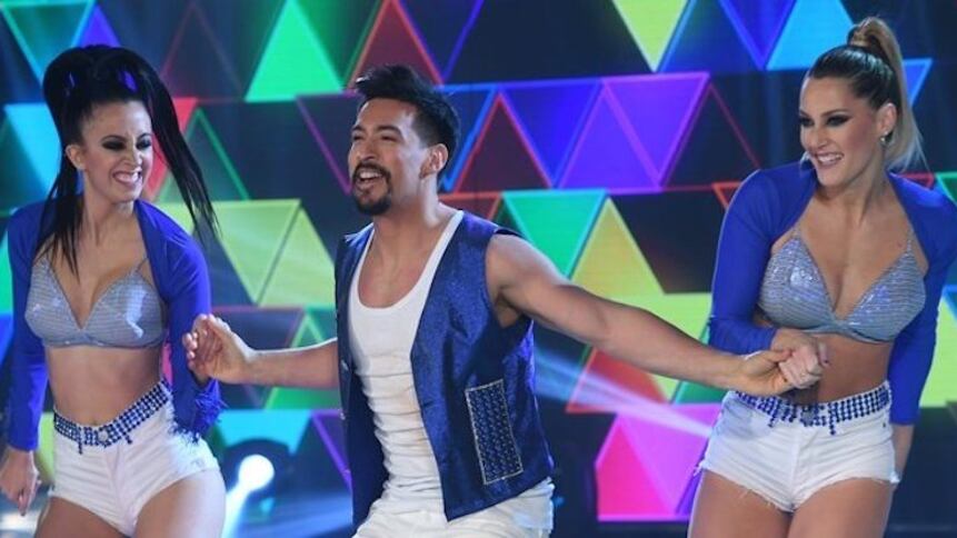 “¡Ya tiene pareja!, Jorge Moliniers ya tiene pareja, felicitaciones”, dijo Tinelli, quien al abrazar al bailarín paraguayo lo tiró contra el decorado del set y se desplomó sobre nuestro compatriota.
