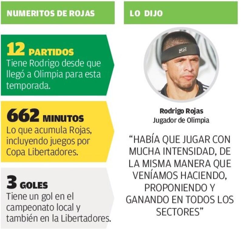 Hablamos de Rodrigo Rojas y Richard Ortiz, dos que le dieron equilibrio y experiencia a la mitad de la cancha de Olimpia en los últimos partidos, justamente, en Copa Libertadores, donde estaban obligados a ganar como sea.