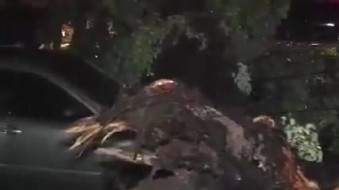 El mismo árbol que mató al joven también cayó sobre un auto que estaba estacionado en esta esquina, un Chevrolet modelo Agile, con chapa UAC 189. El árbol cayó sobre la parte del motor y aplastó totalmente el capó. Felizmente no hubo víctimas en este vehículo.