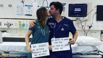 Ya tenían todo listo para dar el sí quiero el pasado 11 de abril, pero el deber les llamó primero a cumplir su juramento de salvar vidas, por lo que decidieron esperar un poco para dar el sí quiero. Ese día los doctores Max y Greta se pasaron el día entre los pacientes del hospital, pero se tomaron unos minutos para la sesión de fotos y compartir en sus redes sociales. Opoi el mensaje desde un quirófano vestidos con sus trajes sanitarios dándose un beso. Ambos tenían un cartel donde contaban que se iban a casar, pero que se fueron al hospital a trabajar. Al final de su mensaje piden a la población quedarse en casa.